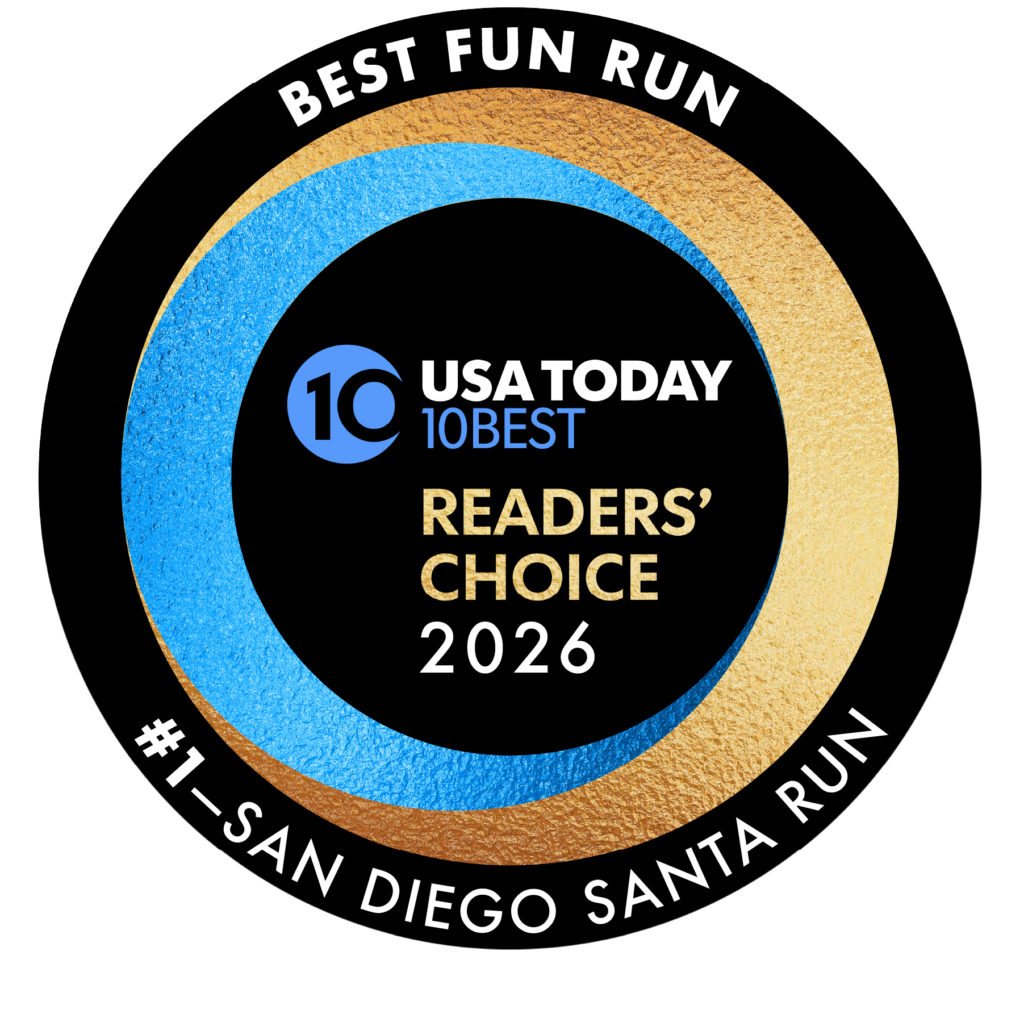 The Santa’s Elves 1 Mile Run (Kids 12 & under) is one of San Diego’s largest kids run! At the conclusion of the Santa Run 5K it will be the kids turn to take over Garnet Avenue. All kids participants will receive a chip timed 1 mile result as well as a finisher medal!